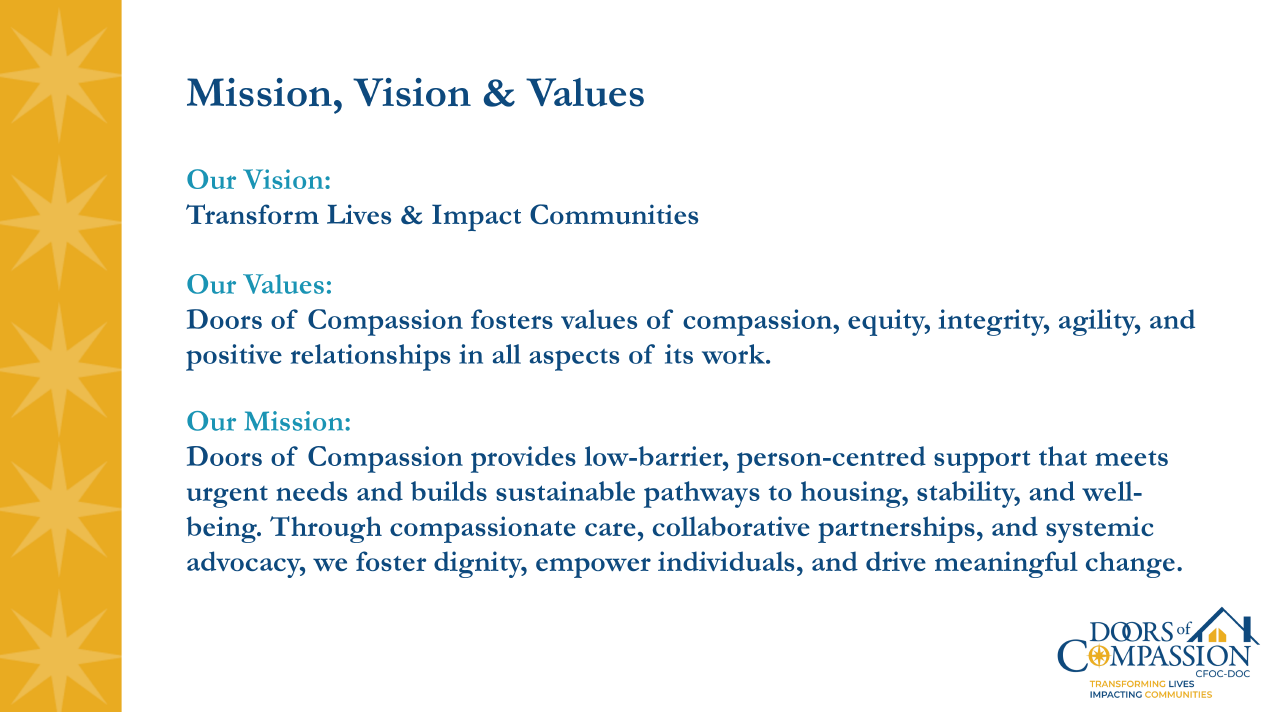 For more information about Doors of Compassion visit www.doorsofcompassion.ca