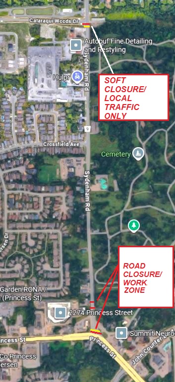 Signage will be installed the week of Nov. 10 in both directions on Sydenham Road and Princess Street, helping to keep motorists and nearby residents informed so they can plan accordingly.